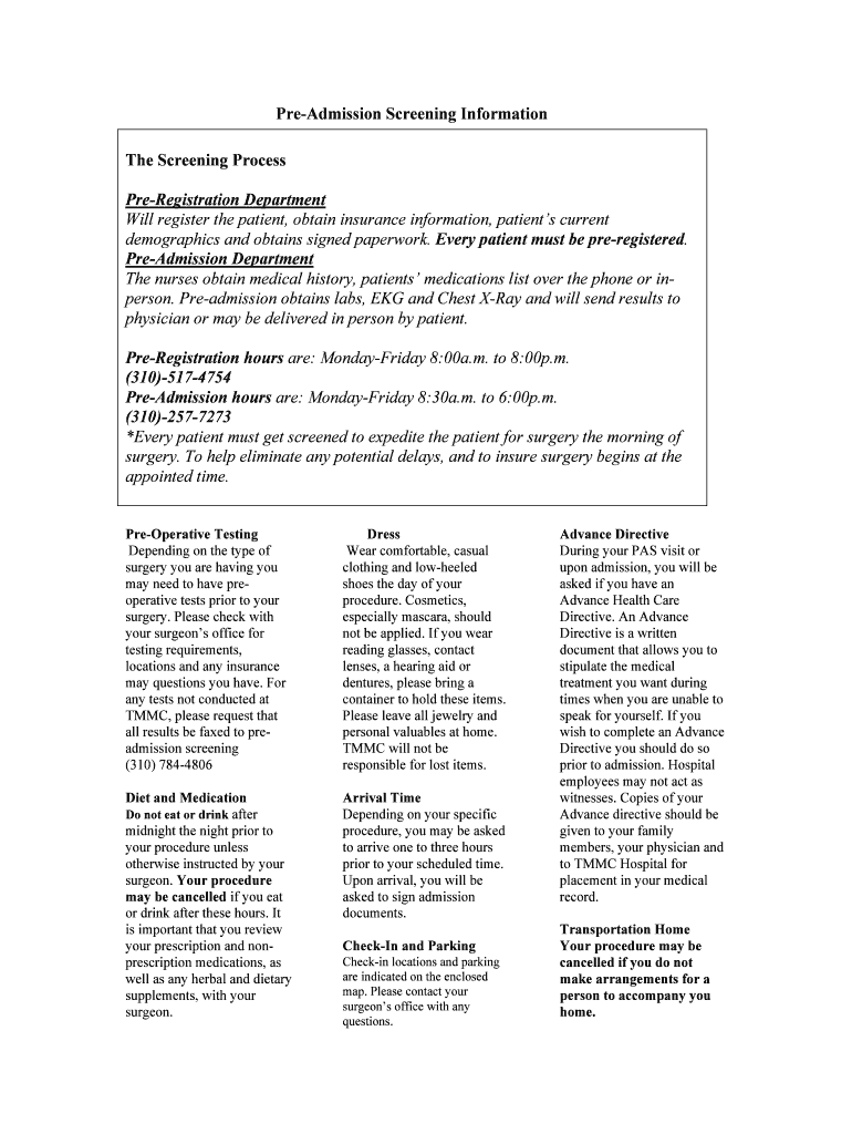 Readmission Screening Information