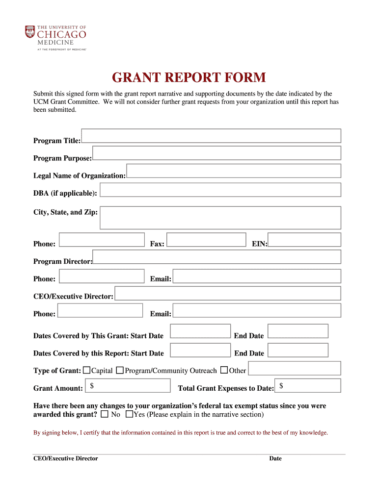 Get the free GRANT REPORT FORM - uchospitalsedu