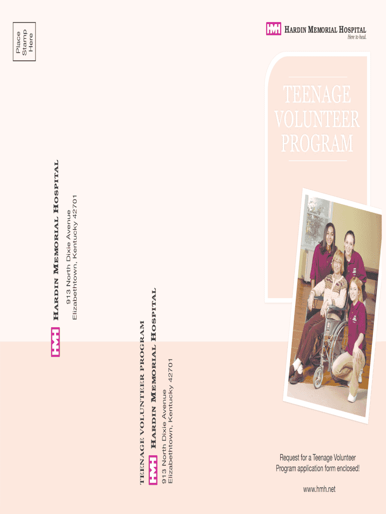 913 North Dixie Avenue Elizabethtown, Kentucky 42701 TEENAGE VOLUNTEER PROGRAM 913 North Dixie Avenue Elizabethtown, Kentucky 42701 TEENAGE VOLUNTEER PROGRAM Request for a Teenage Volunteer Program