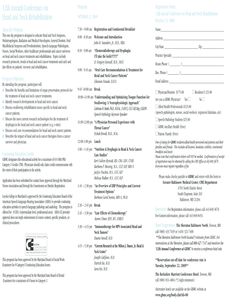 Get the free 12th Annual Conference on Program Registration Form Head - gbmc