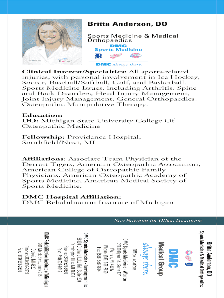 Get the free Britta Anderson DO - DMC - dmc