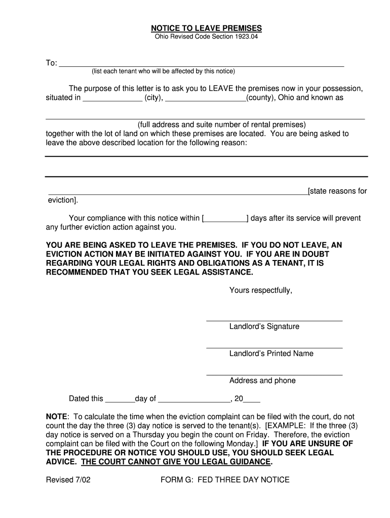 Get the free Ohio Notice to Leave Premises
