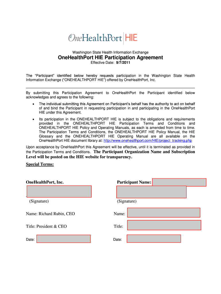 Get the free Welcome Future OneHealthPort HIE Participants