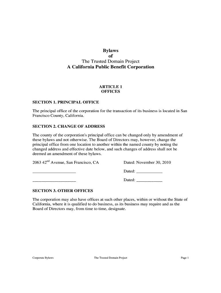 Get the free Bylaws of The Trusted Domain Project A California Public Benefit bb - trusteddomain