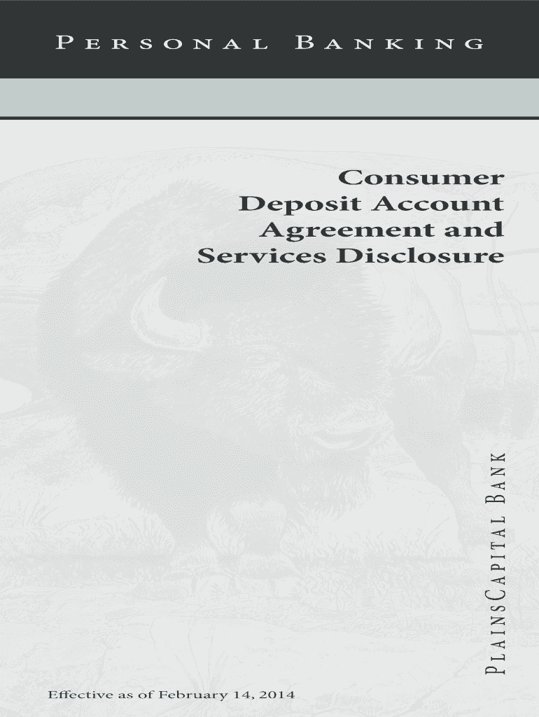Personal Banking PlainsCapital Bank Consumer Deposit Account Agreement and Services Disclosure Effective as of February 14, 2014, Table of Contents Consumer Deposit Account and Services Agreement