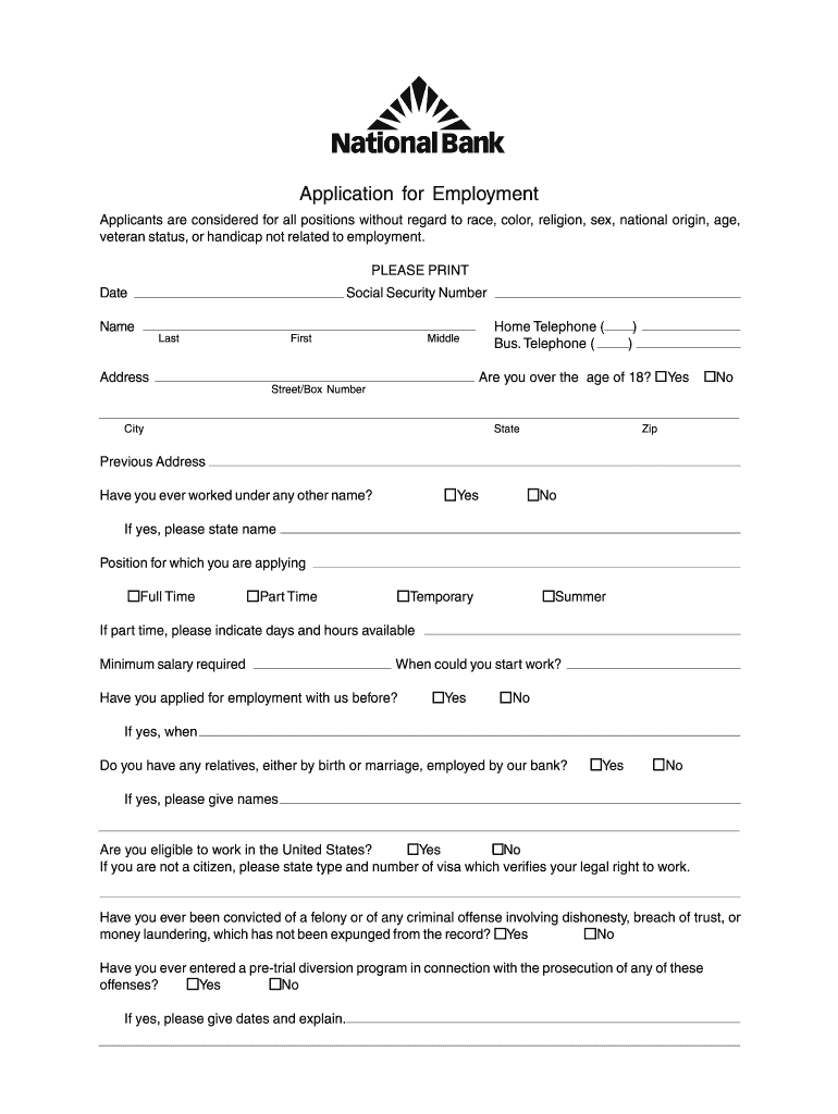 Get the free Employment Application letter - nbbankcom