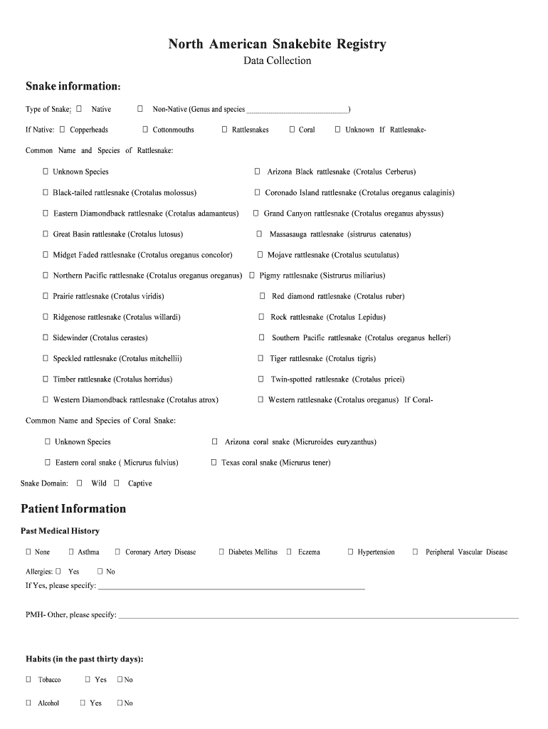 North American Snakebite Registry is not the form you're looking for?Search for another form here.