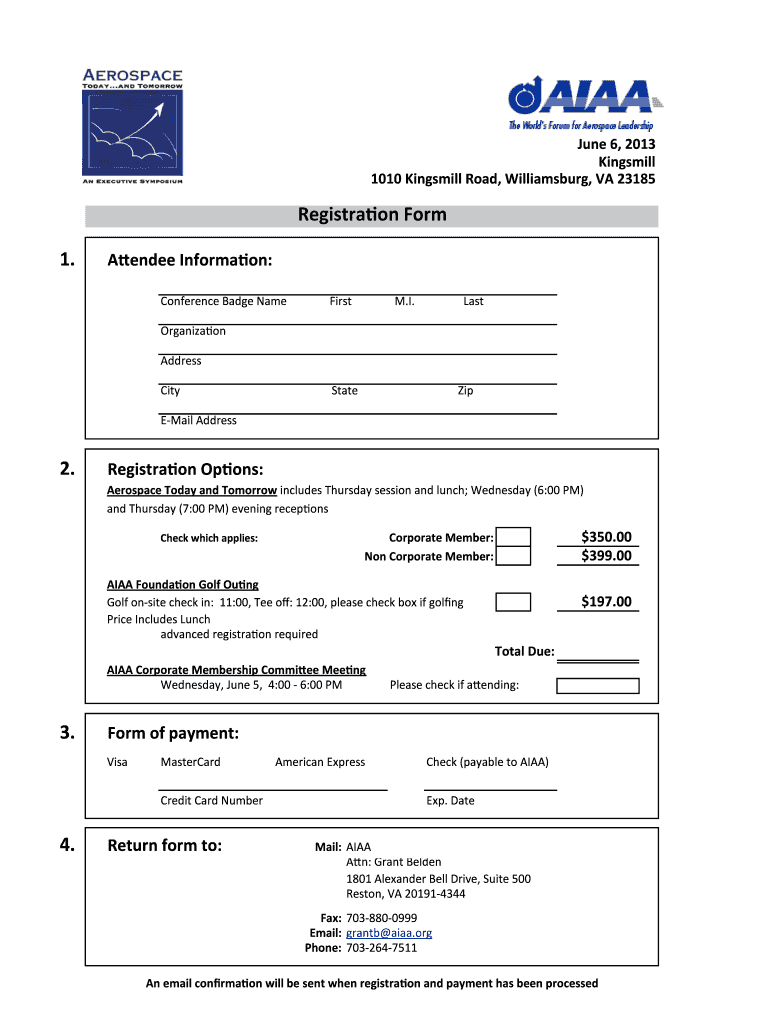 Get the free Registratino Form 1 A endee Informa on - aiaa