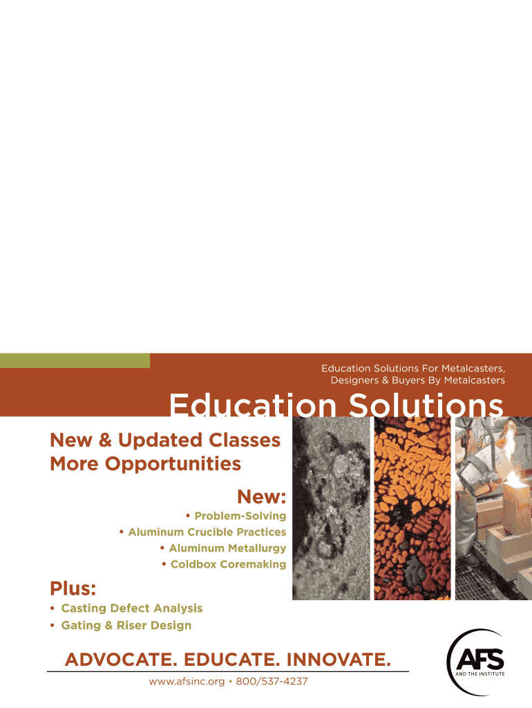 Cast Metals Institute 1695 N. Penny Lane Schaumburg, IL 601734555 www.afsinc.org Education Solutions For Metal casters, Designers & Buyers By Metal casters Education Solutions New & Updated Classes