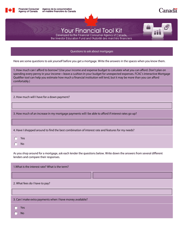 Here are some questions to ask yourself before you get a mortgage. Write the answers in the spaces when you know them.
