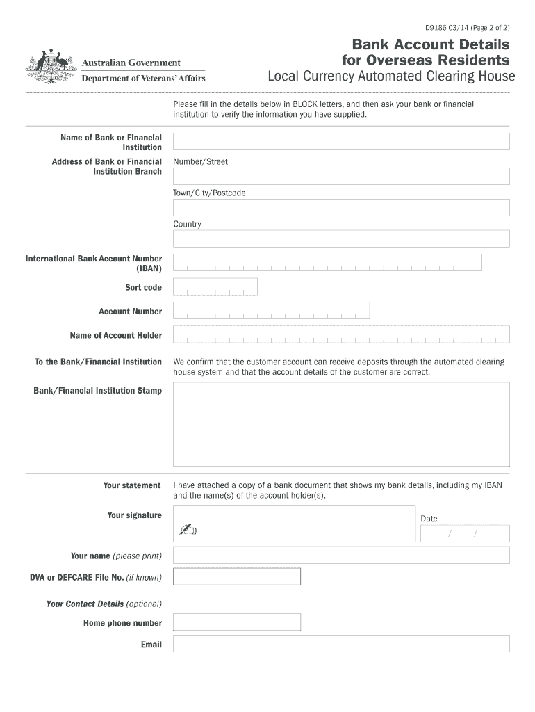 IMPORTANT D9186 03/14 (Page 1 of 2) Bank Account Details for Overseas Residents Local Currency Automated Clearing House Privacy notice Your personal information is protected by law, including the