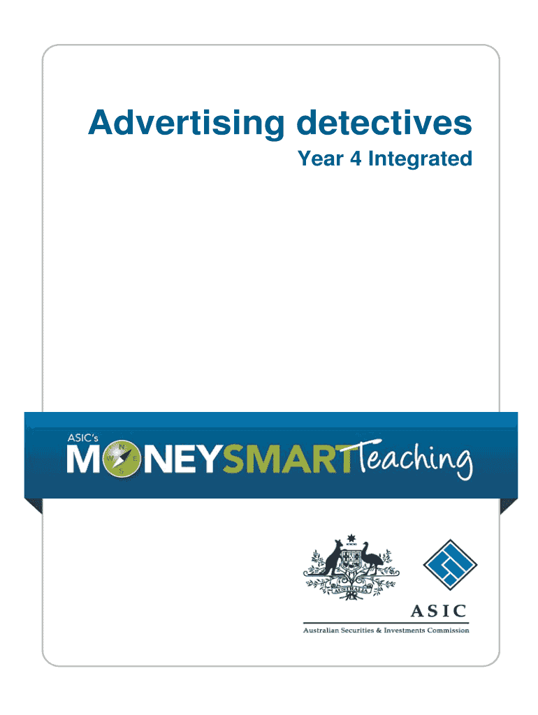 Advertising detectives Year 4 Integrated Copyright information Websites: ASIC.gov.AU, money smart.gov.AU Creative Commons This unit of work is available under the Creative Commons license (BYN CSA).