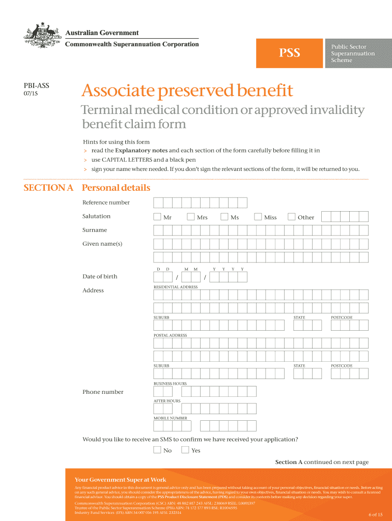 PBI ASS 07/15 Associate preserved benefit Terminal medical condition or approved invalidity benefit claim form and information leaflet The attached benefit application form should be completed by