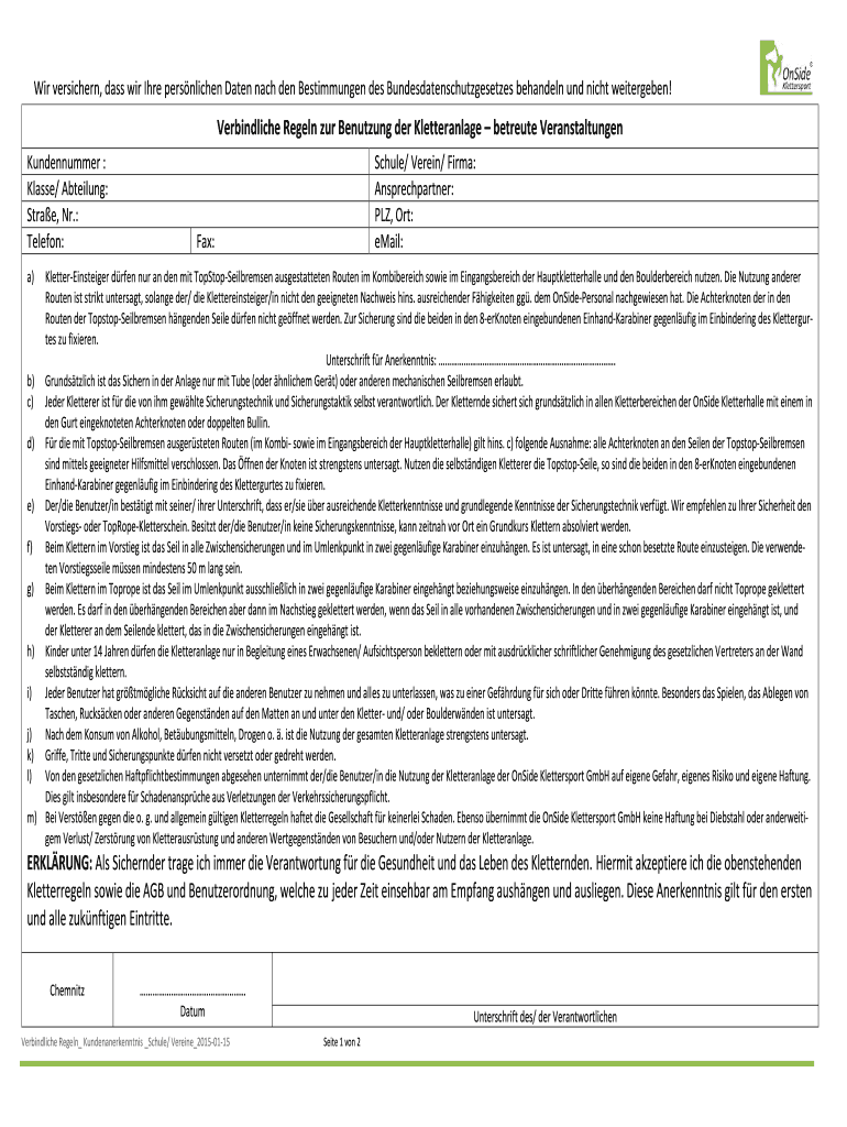 Get the free Wir versichern dass wir Ihre persnlichen Daten - onsideklettersport