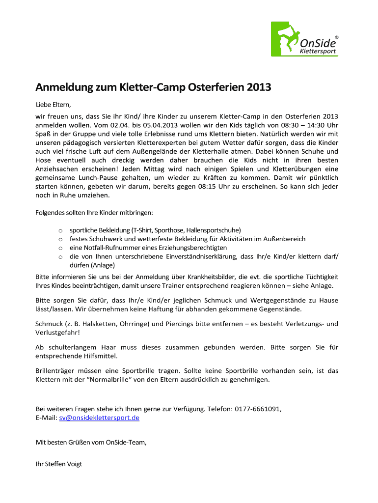 Get the free wir freuen uns, dass Sie ihr Kind ihre Kinder zu unserem KletterCamp in den Osterfer...