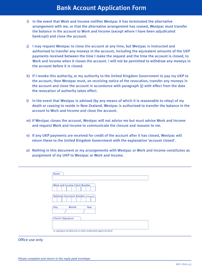 Get the free Bank Account Application Form - workandincomegovtnz - workandincome govt