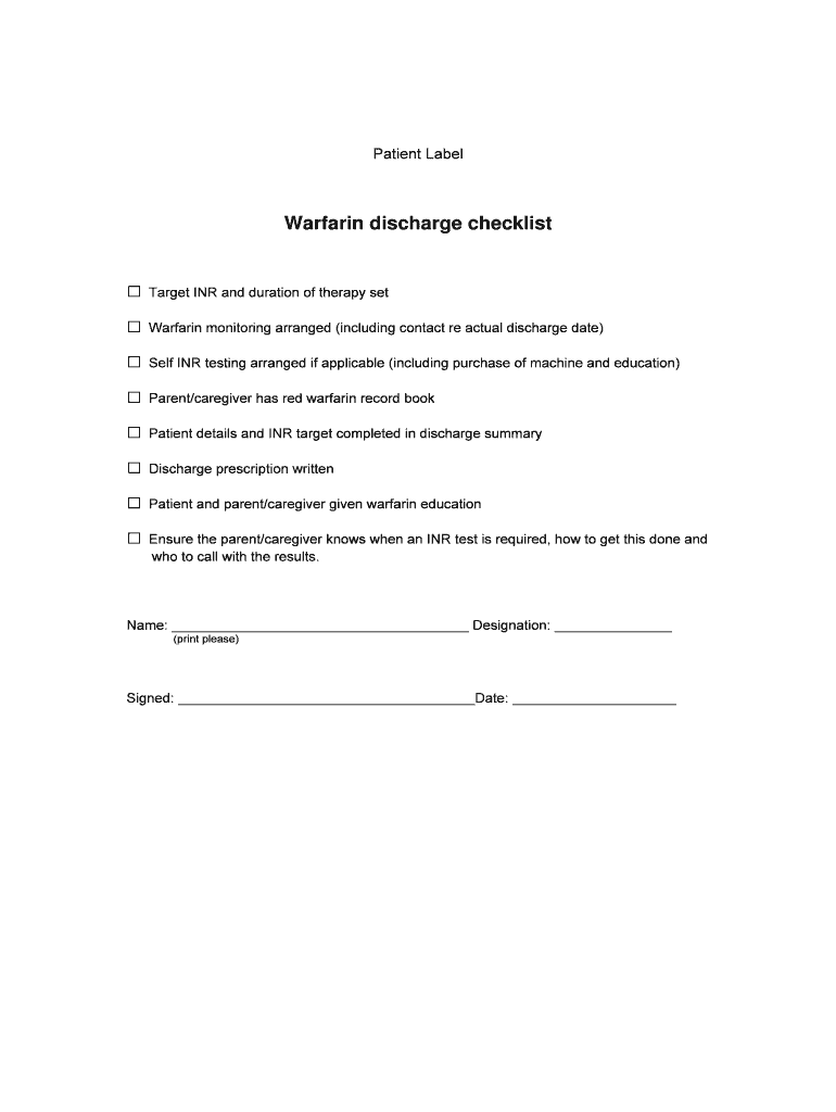 How to fill out anticoagulation warfarin discharge checklistdoc