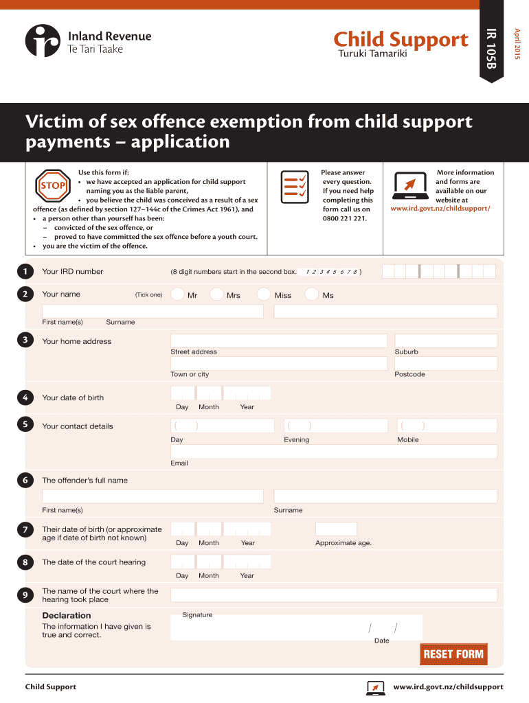 Victim of sex offense exemption from child support payments' application Use this form if: have accepted an application for child support we naming you as the liable parent, you believe the child