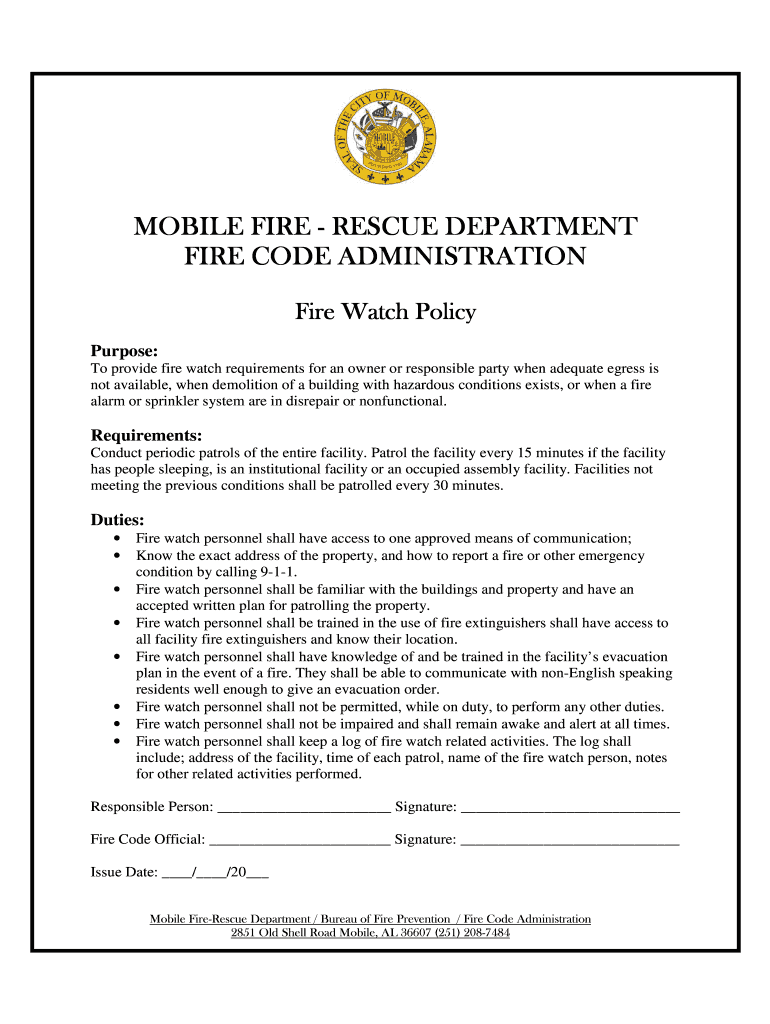 Get the free Fire Watch Policy Fire Watch Policy in Mobile Alabama - cityofmobile