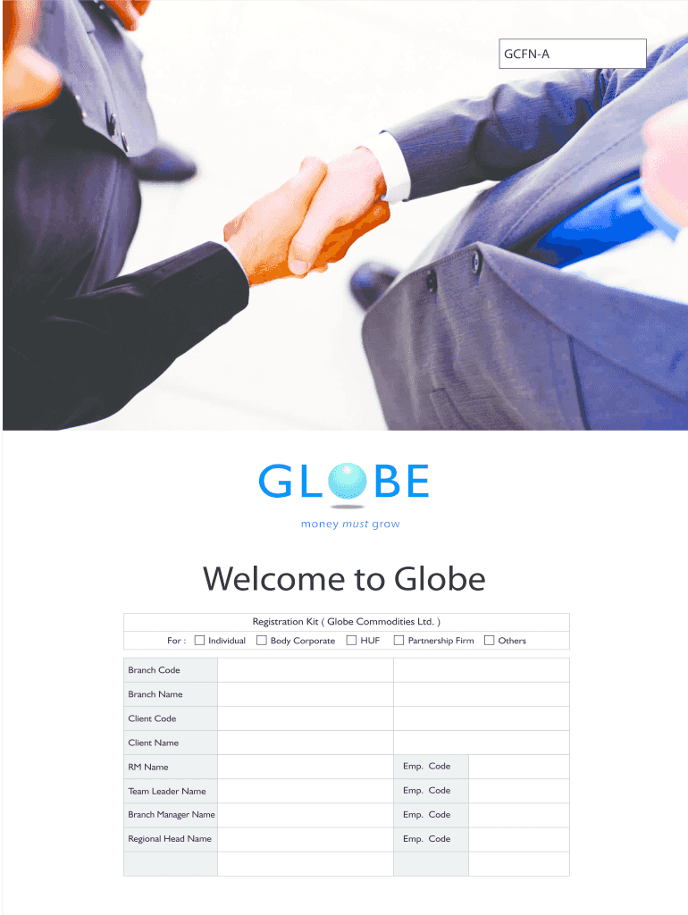 GHANA money must grow Welcome to Globe Registration Kit (Globe Commodities Ltd. ) For : Individual Body Corporate HUF Partnership Firm Branch Code Branch Name Client Code Client Name RM Name EMP.