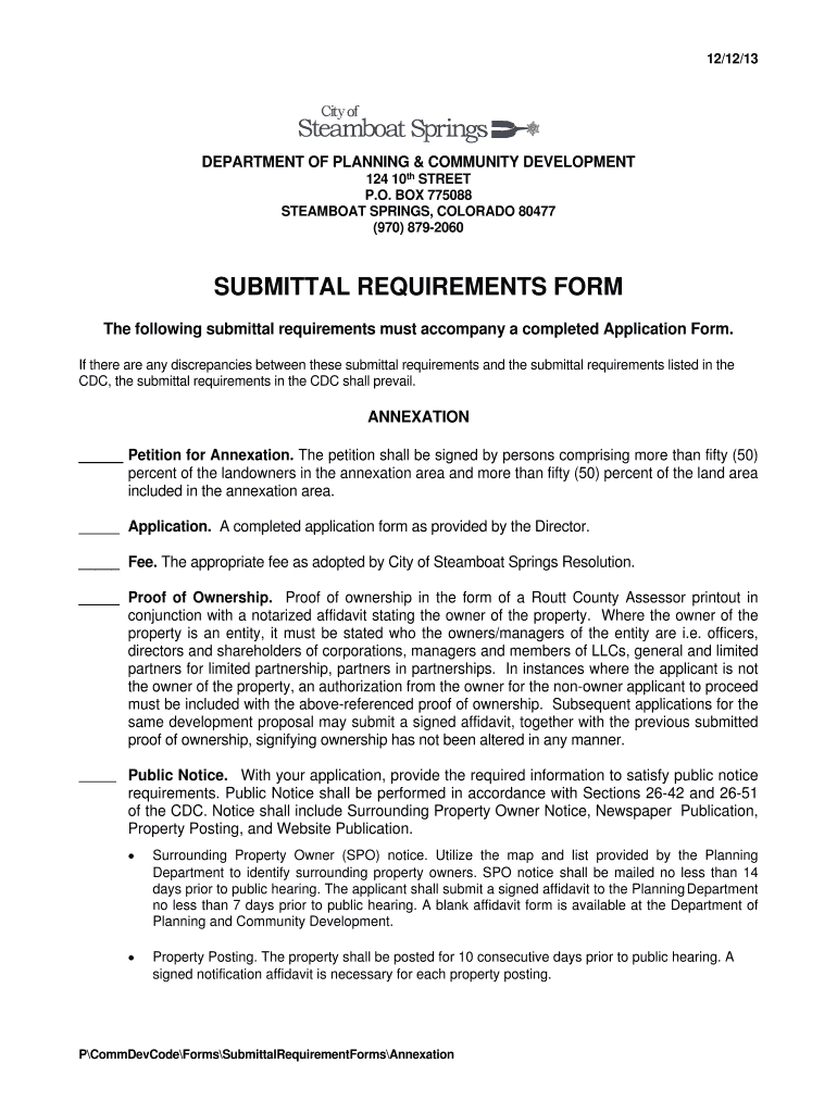 Get the free A p p lic a tio n Petition for Annexation - steamboatsprings