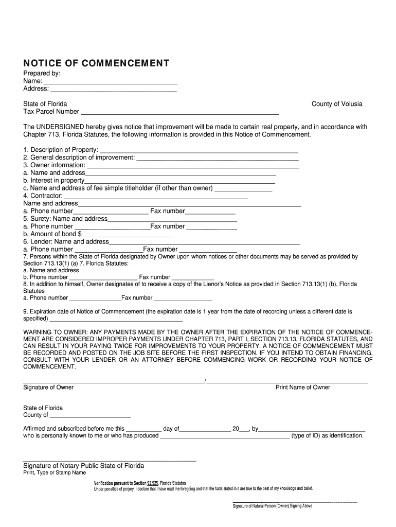 Get the free NOTICE OF COMMENCEMENT -REVISEDdoc - debary