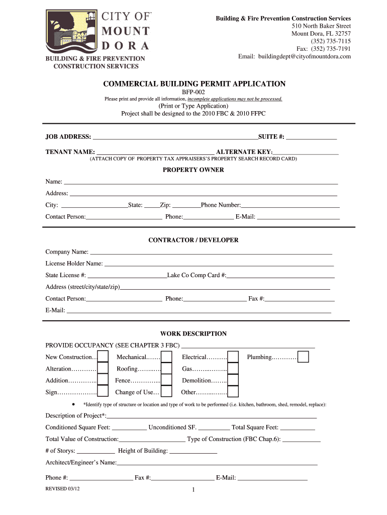 Get the free Building & Fire Prevention Construction Services - ci mount-dora fl