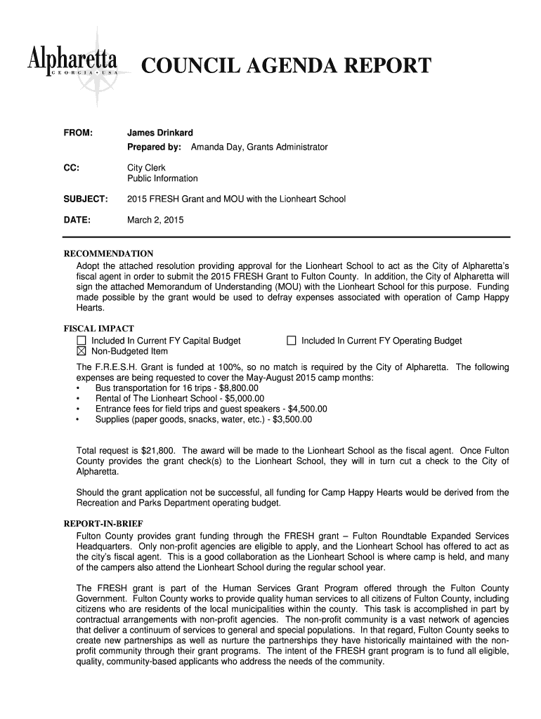 Get the free 2015 FRESH Grant and MOU with the Lionheart School - alpharetta ga
