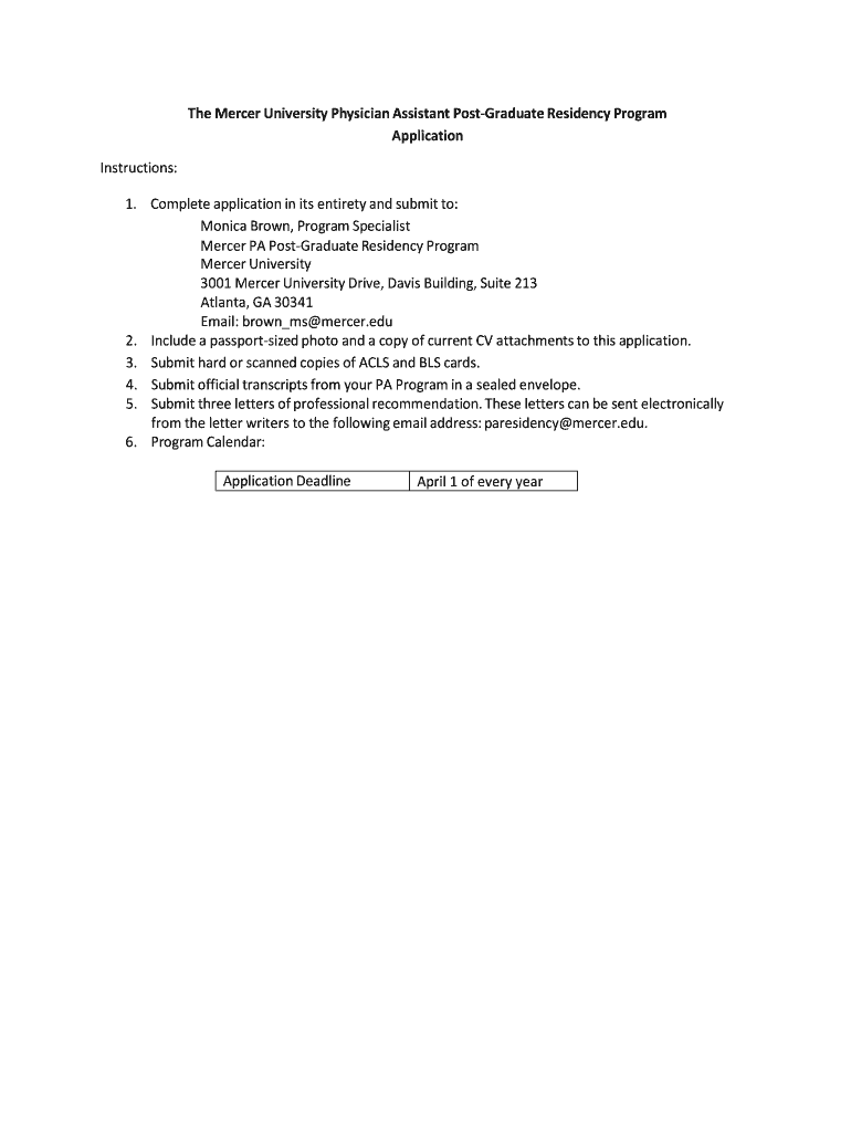 Get the free The Mercer University Physician Assistant Post Graduate