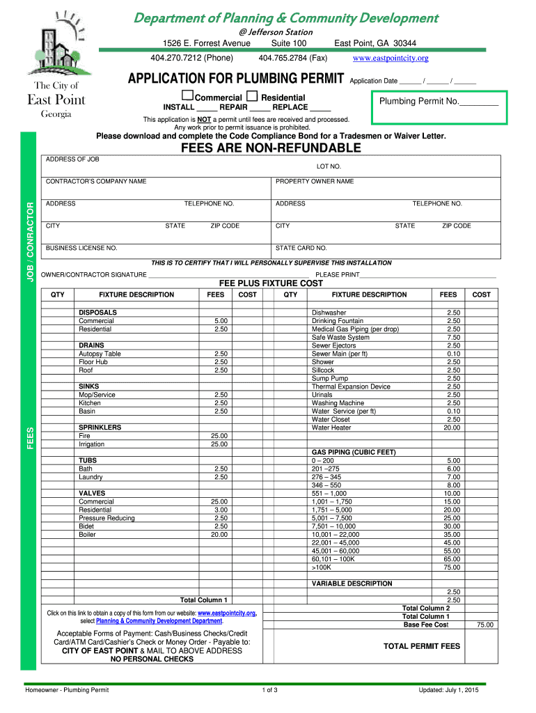 Department of Planning & Community Development Jefferson Station 1526 E. Forrest Avenue 404.270.7212 (Phone) Suite 100 East Point, GA 30344 www.eastpointcity.org 404.765.2784 (Fax) APPLICATION FOR