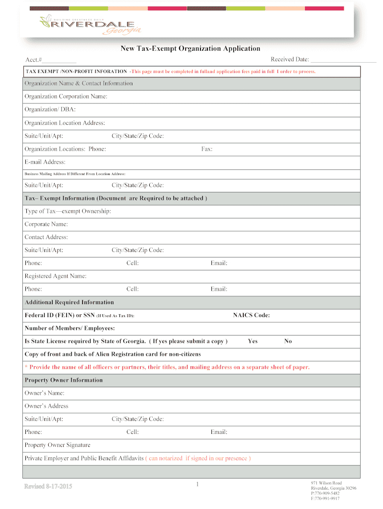 New Tax-exempt Organization Application Received Date: Acct.# TAX EXEMPT /NONPROFIT INFORMATION This page must be completed in full and application fees paid in full I order processing. Organization