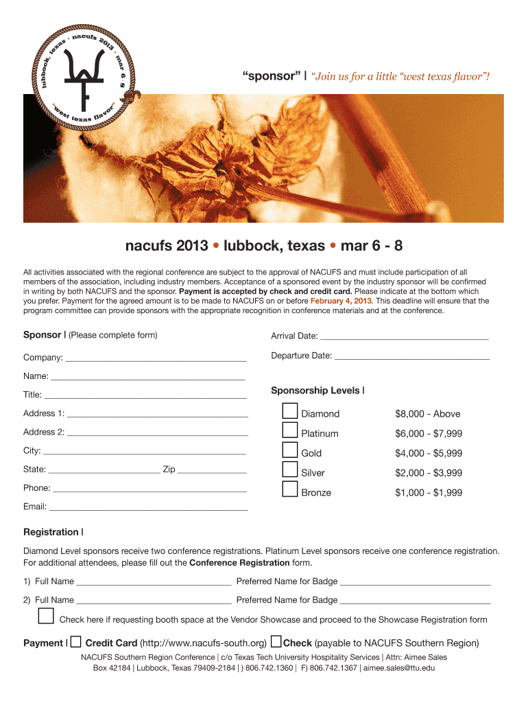 How to fill out 2013 NACUFS Southern Region Conference Sponsorship