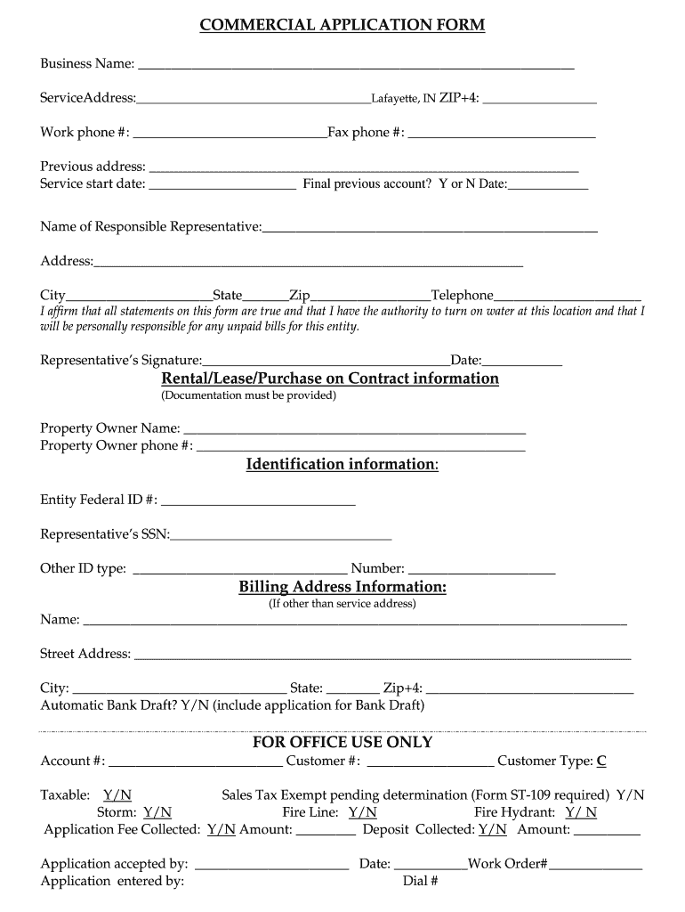 Get the free COMMERCIAL APPLICATION FORM - Lafayette - lafayette in