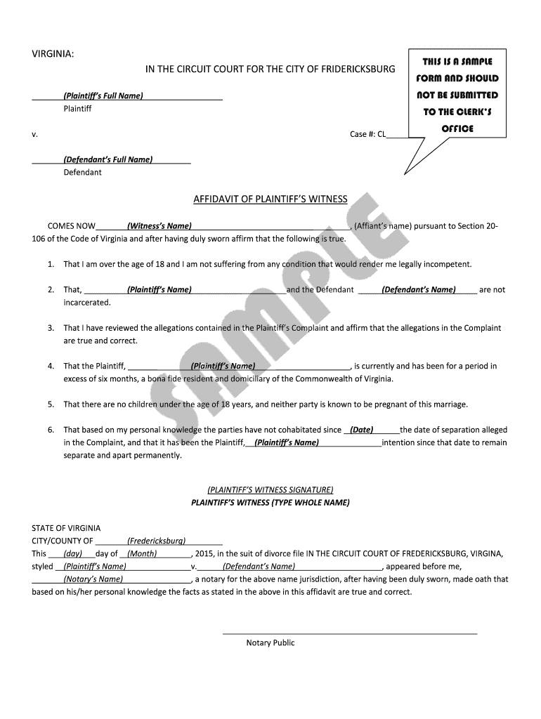 Get the free AFFIDAVIT OF PLAINTIFFS WITNESS - Fredericksburg VA - fredericksburgva