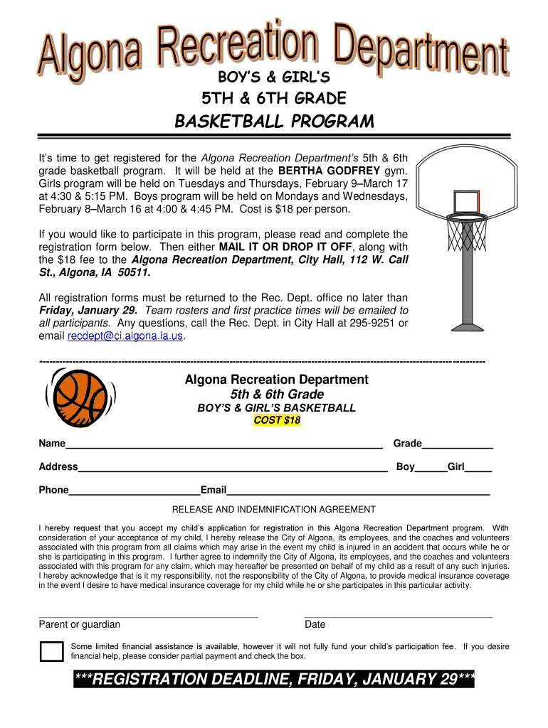 Get the free 5TH 6TH GRADE BASKETBALL PROGRAM - ci algona ia