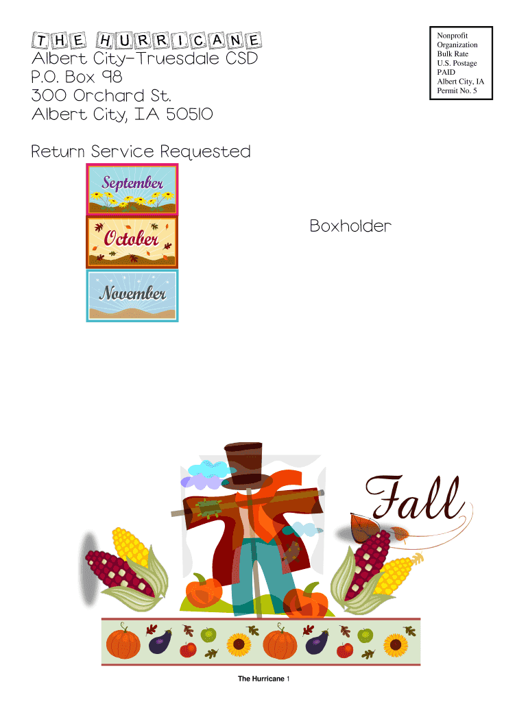Nonprofit Organization Bulk Rate U.S. Postage PAID Albert City, IA Permit No. 5 The Hurricane 1 www.albertct.k12.ia.us Albert CityTruesdale Community School Newsletter 1st Quarter by Sarah Voles,