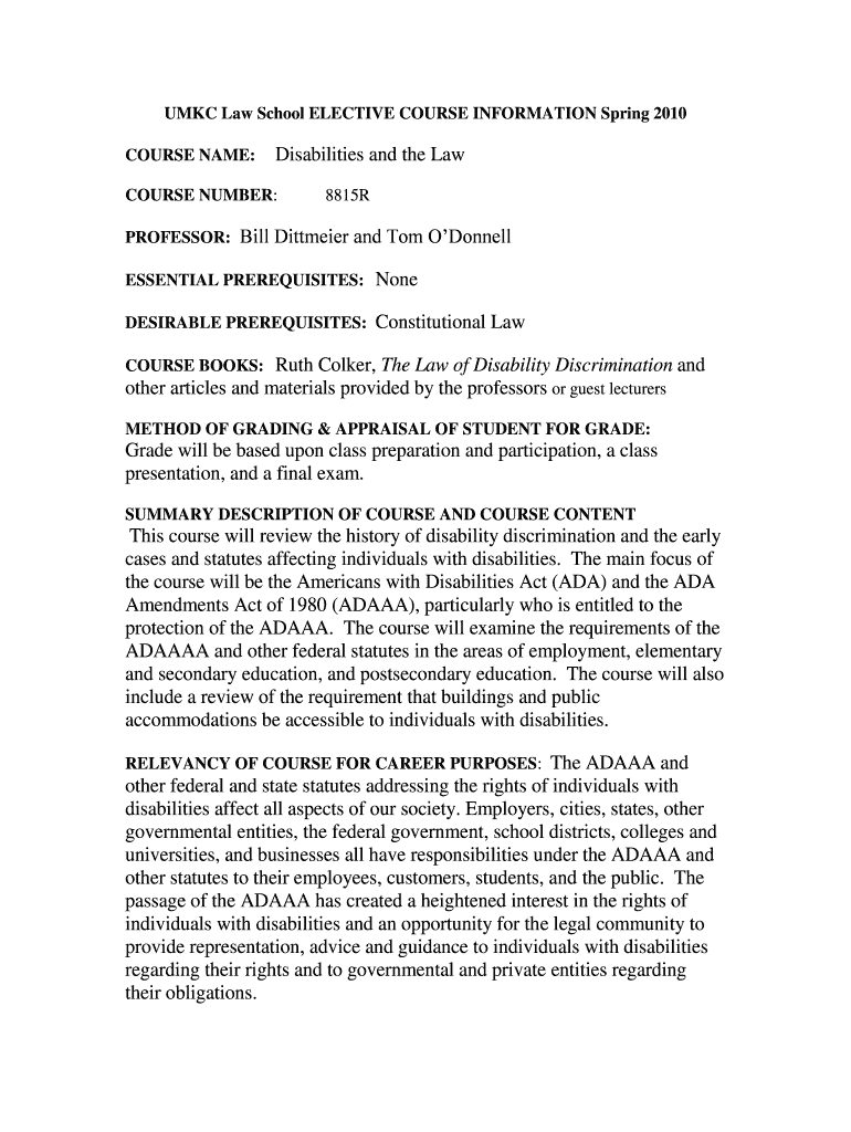 Get the free Disabilities and the Law - www1 law umkc