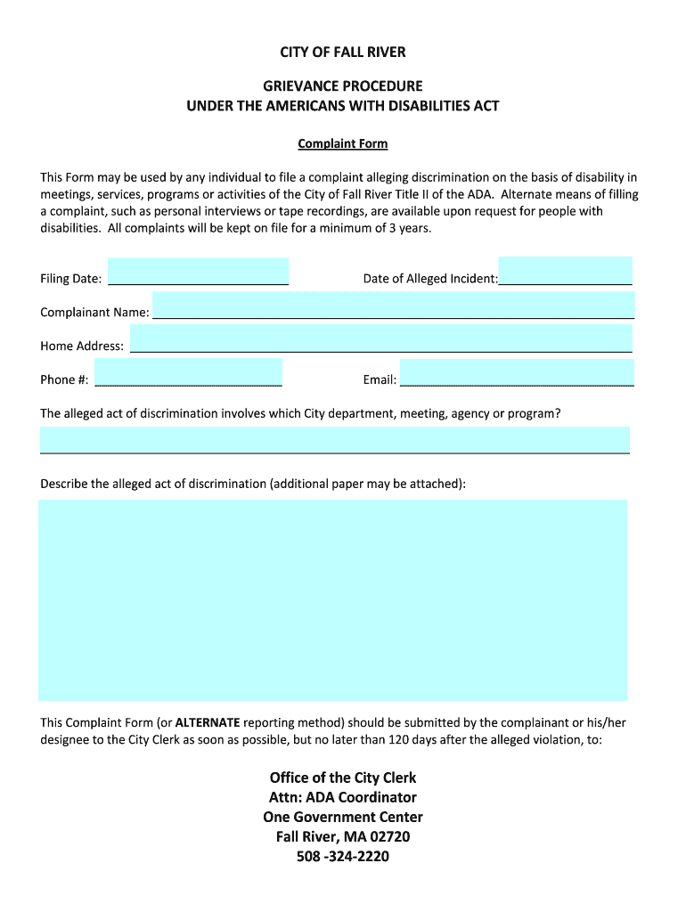 Get the free CITY OF FALL RIVER GRIEVANCE PROCEDURE UNDER THE AMERICANS