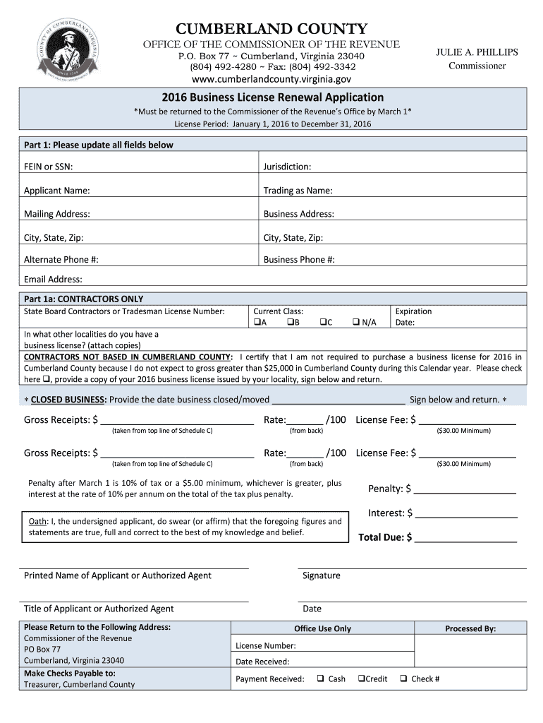 Get the free Business bLicenseb Re-Application - Cumberland County - cumberlandcounty virginia