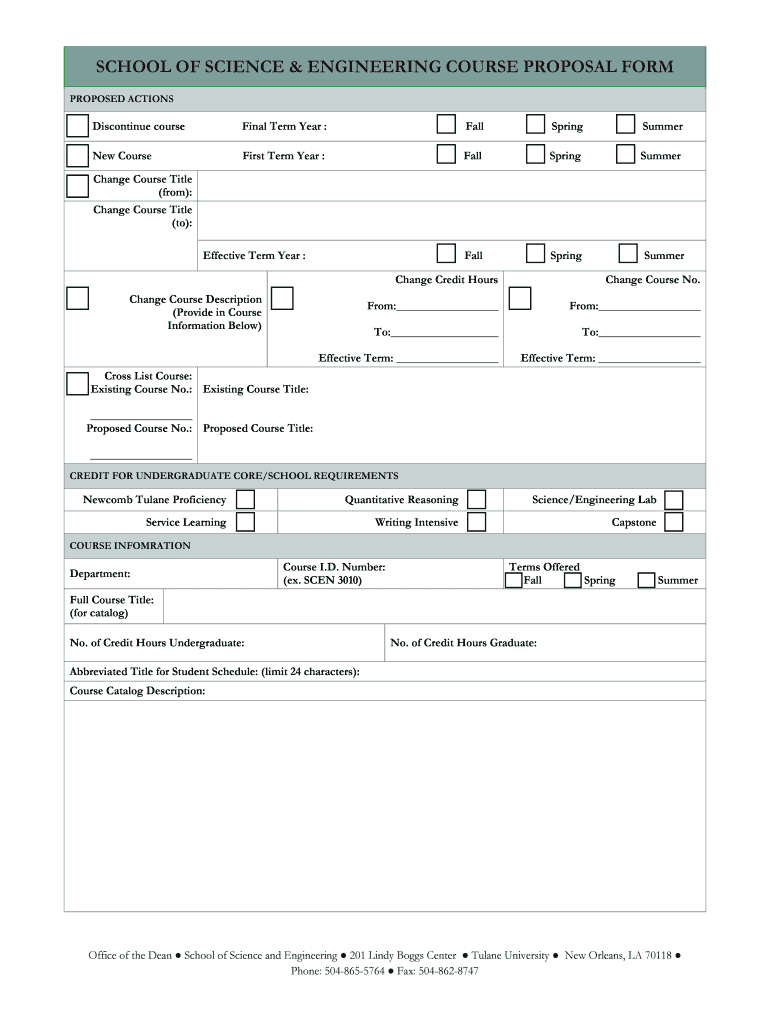 Get the free SCHOOL OF SCIENCE & ENGINEERING COURSE PROPOSAL FORM - tulane