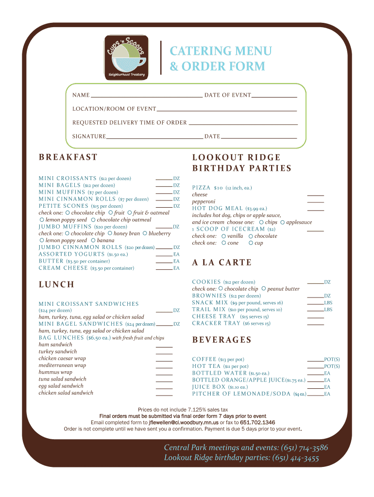 Get the free CATERING MENU ORDER FORM - ciwoodburymnus - ci woodbury mn