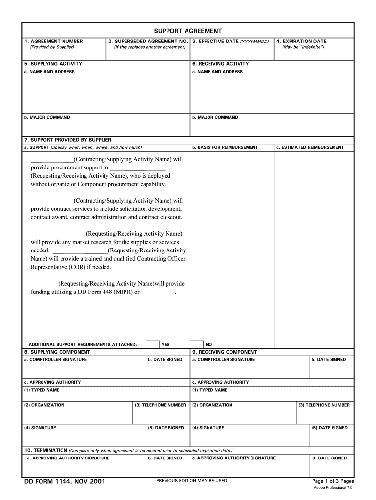 Get the free DD bFormb 1144 Support Agreement November b2001b - acq osd