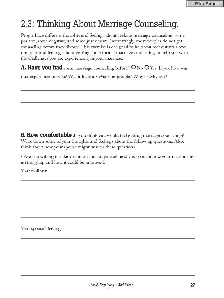 Real-Life Applications of the Marriage Counseling Consideration Form