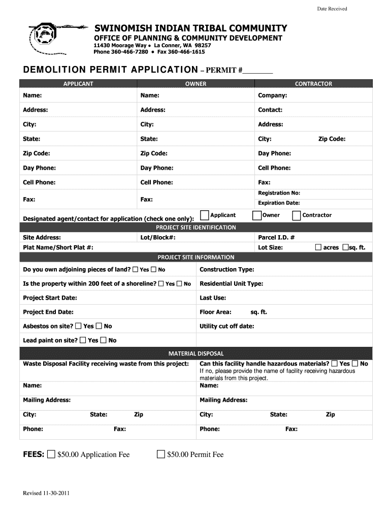 Get the free SWINOMISH INDIAN TRIBAL COMMUNITY DEMOLITION bPERMITb bb
