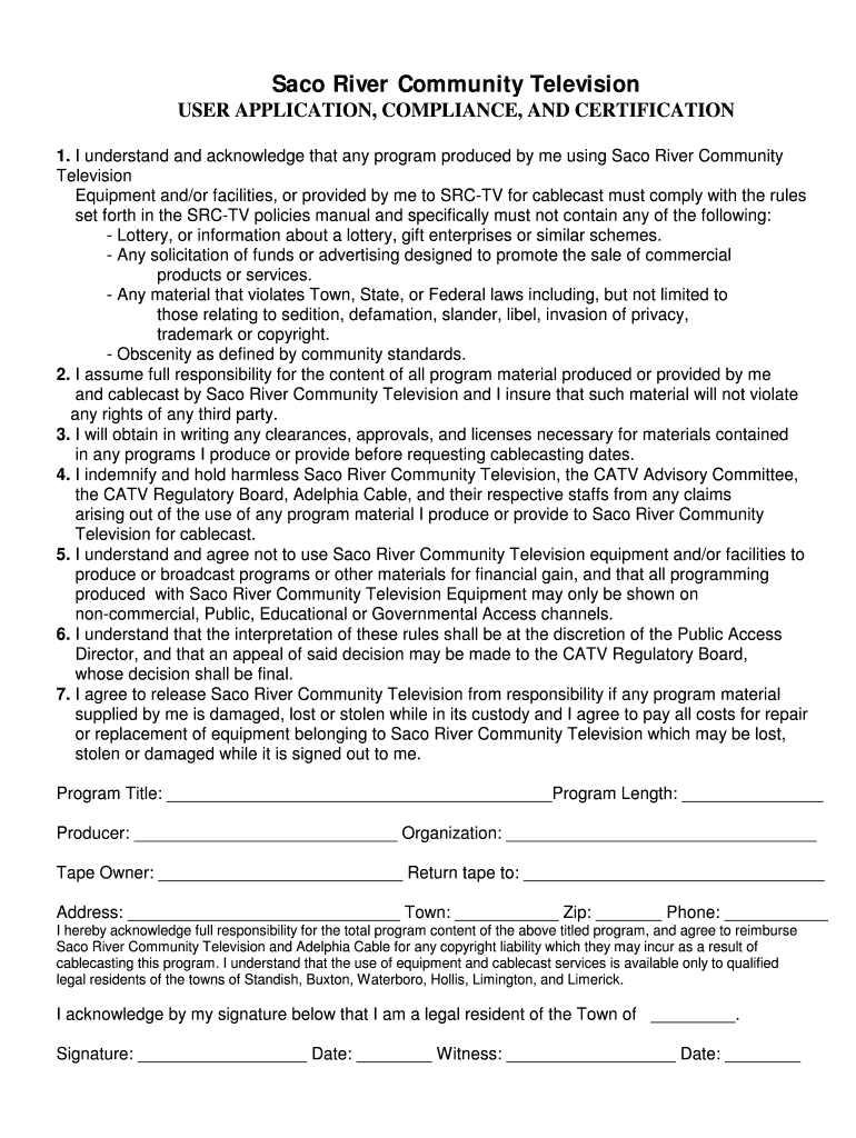 Get the free User Compliance Form - Saco River Community