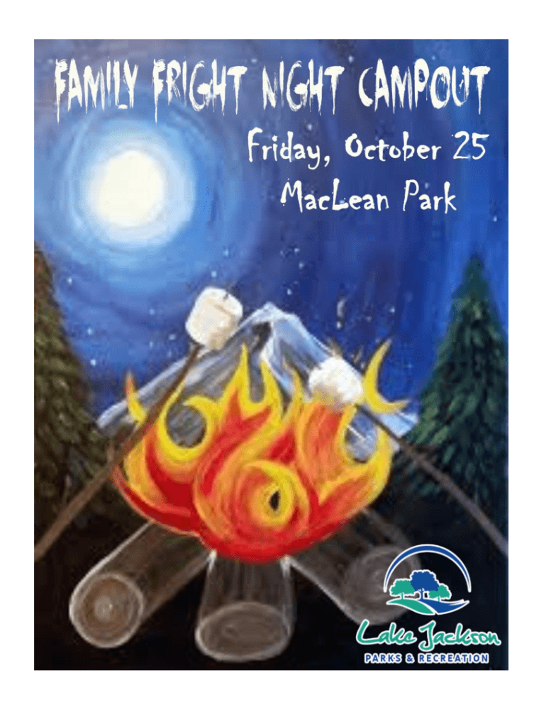 Family Fright Night Campout DATE AND LOCATION Friday, October 25 Saturday, October 26, 2019, at MacLean Park REGISTRATION & CHECK IN All participants must be preregistered at The Recreation Centerline