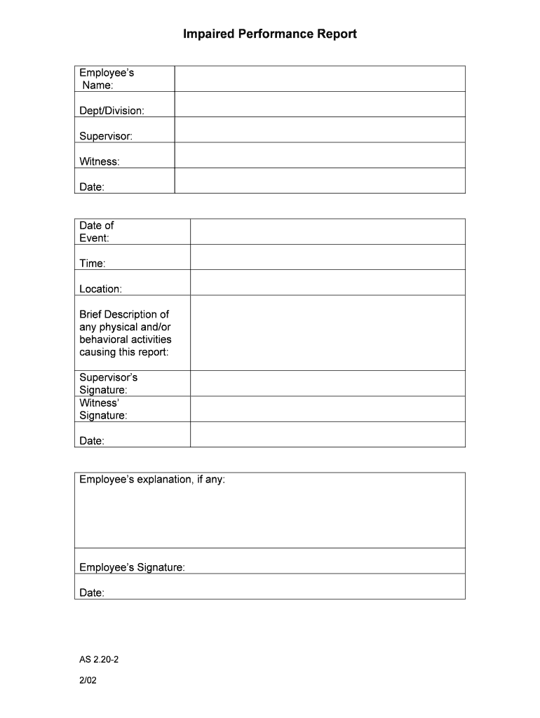 Get the free Impaired Performance Report