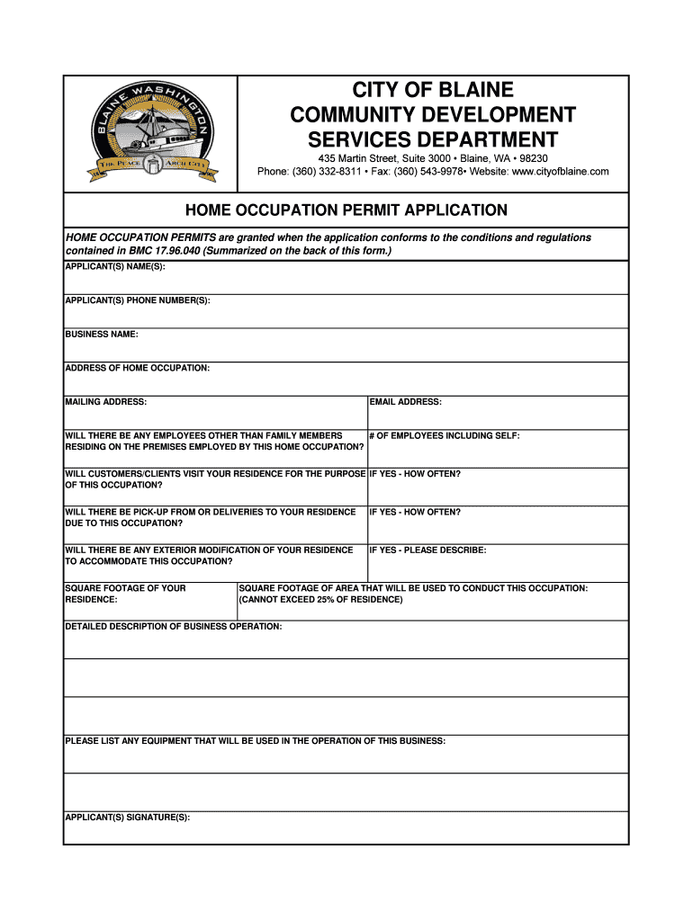 Get the free HOME OCCUPATION APPLICATION PACKET - ci blaine wa