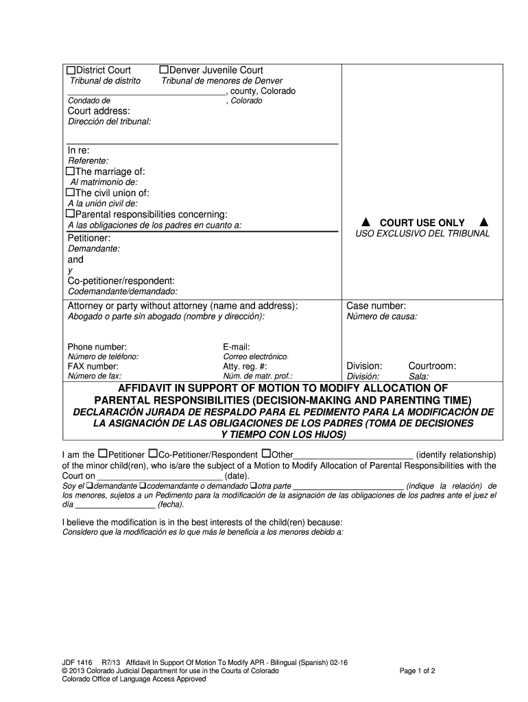 Get the free AFFIDAVIT IN SUPPORT OF MOTION TO MODIFY ALLOCATION OF - courts state co