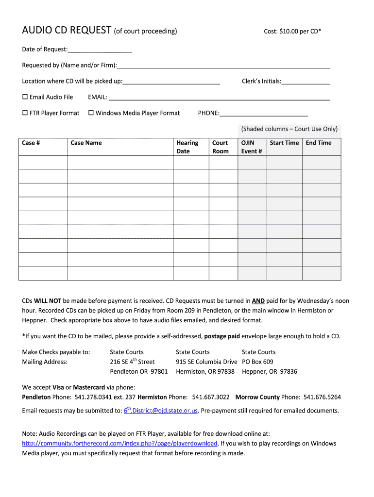 Get the free AUDIO CD REQUEST - Oregon - courts oregon
